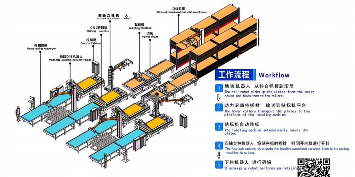 Grabs labeled panels, positions precisely, feeds to cutting machine (replaces manual lifting—fast, error-free).